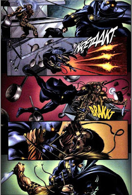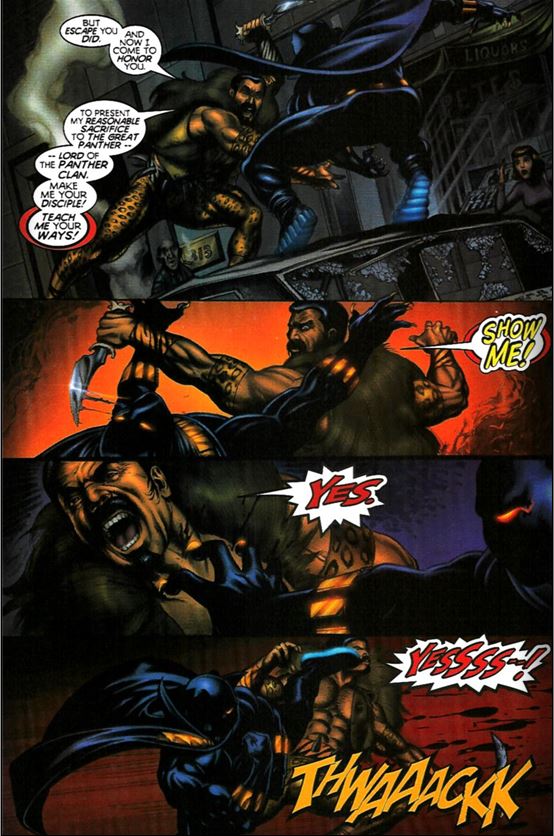Background: Kraven the Hunter is hired by Hunter to capture T'challa and deliver him to some gangstas. T'challa does not go quietly. The fight was in typical Priest style of not being in chronological order so I did the best I could to put together the pieces.